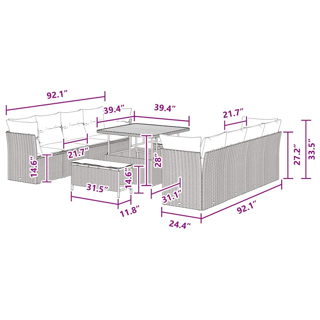 Σετ Καναπέδων 11 Τεμαχίων με Μαξιλάρια Μαύρο Πολυ Ράταν Ακακία