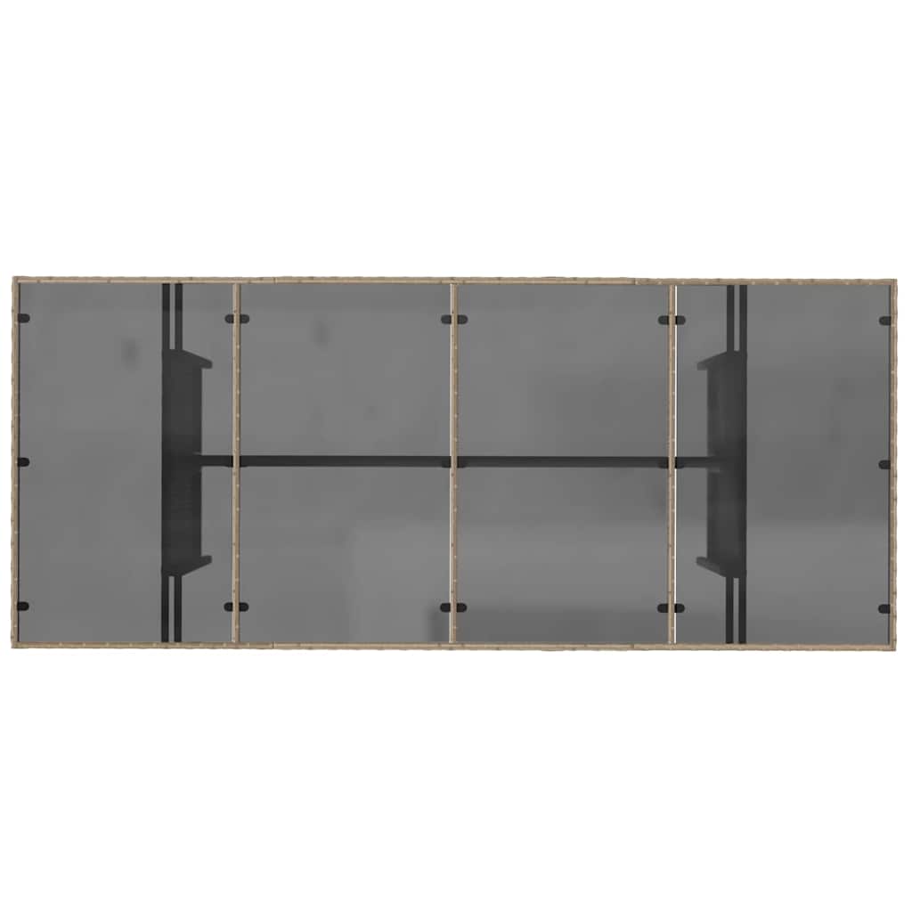 Αυτό το 9 κομμάτι σετ τραπεζαρίας κήπου είναι μια εξαιρετική επιλογή για κάθε εξωτερικό χώρο, είτε είναι βεράντα, μπαλκόνι ή κήπος. Η κομψή μπεζ απόχρωση του πλαστικού ρατάν και η ενισχυμένη γυάλινη επιφάνεια το κάνουν όχι μόνο πρακτικό αλλά και ωραίο στην εμφάνιση, ιδανικό για πάρτι ή χαλαρά γεύματα.