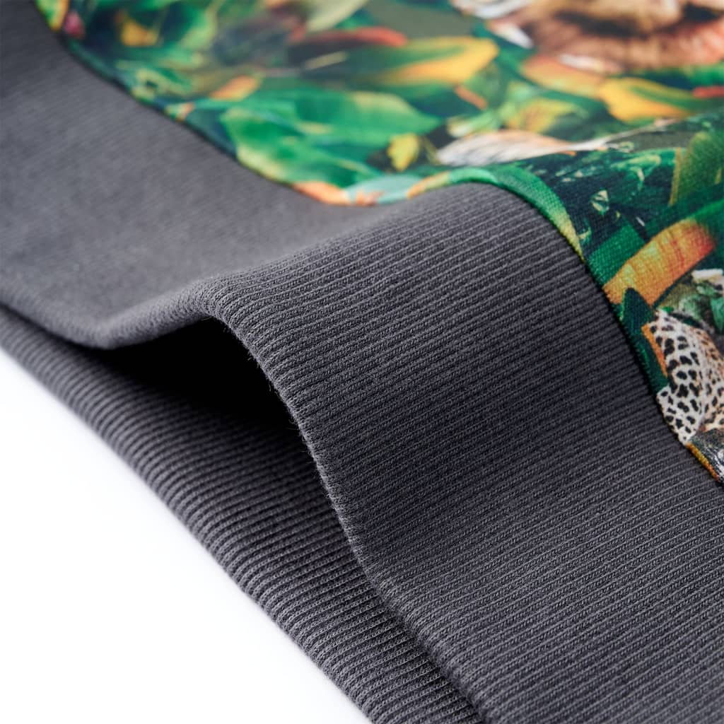 Αυτό το παιδικό φούτερ έχει μακριά μανίκια, στρογγυλή λαιμόκοψη και πλέξη ριμπ στις μανσέτες, στη λαιμόκοψη και στο κάτω μέρος. Αυτό το παιδικό φούτερ έχει τυπωμένα ζώα και φυτά σε όλη την επιφάνεια. Το παιδικό φούτερ είναι κατασκευασμένο από μαλακό υλικό που περιλαμβάνει 95% βαμβάκι και 5% ελαστάνη για άνεση και διαπνοή.