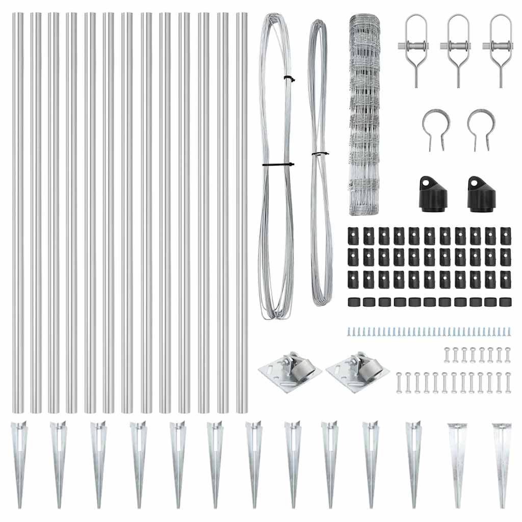 Αυτός ο Φράχτης Πεδίων της vidaXL έχει ανθεκτικό σχεδιασμό από γαλβανισμένο ατσάλι με ευέλικτη λειτουργικότητα, τέλεια για να δείχνει τα όρια έξω. Η λαμπερή ασημί επιφάνειά του και η αξιόπιστη κατασκευή εξασφαλίζουν ασφάλεια στον χώρο σας και προσθέτουν μια ωραία πινελιά στα εξωτερικά σας. Ιδανικός για κήπους και αγρούς.