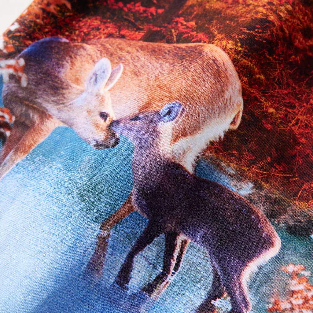 Αυτό το παιδικό φόρεμα έχει μακριά μανίκια, στρογγυλή λαιμόκοψη και κλείνει με φερμουάρ στο πίσω μέρος. Αυτό το παιδικό φόρεμα σε χρώμα παλαιωμένο ροζ διαθέτει ένα υπέροχο σχέδιο ελαφιού. Το κοντό παιδικό φόρεμα είναι κατασκευασμένο από μαλακό υλικό που περιλαμβάνει βαμβάκι και ελαστάνη για άνεση και διαπνοή.