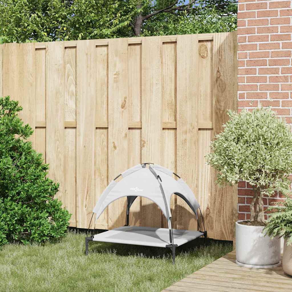 vidaXL Αυξημένο Κρεβάτι Σκύλου με Αποσπώμενη Οροφή Ασημί Γκρι Μέταλλο