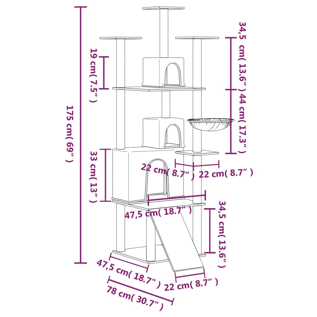 vidaXL Γατόδεντρο Σκούρο Γκρι 175 εκ. με Στύλους Ξυσίματος από Σιζάλ