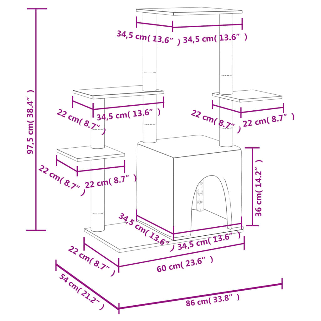 • Πύργος γάτας «όλα σε ένα»: Αυτό το έπιπλο πολλαπλών επιπέδων για γάτες είναι σχεδιασμένο με ένα σπίτι και πλατφόρμες, παρέχοντας το ιδανικό μέρος ώστε οι γάτες σας να σκαρφαλώνουν, να κάθονται, να ξύνονται, να κρύβονται, καθώς και να χαλαρώνουν.
