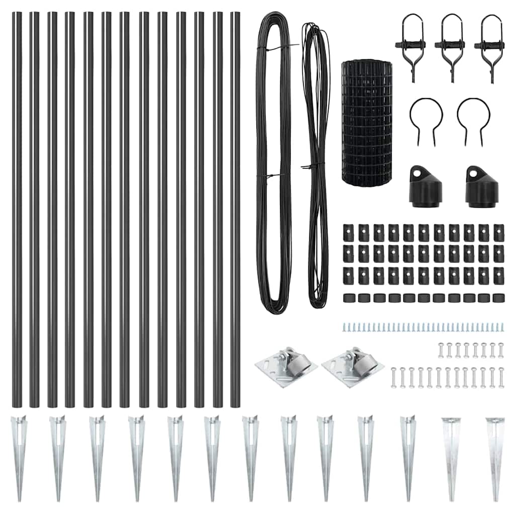 vidaXL Ευρωπαϊκό Φράχτη με 13 Πόστες Στην Καρφίτσα 1x25 μ Γαλβανισμένο Ατσάλι Γκρι