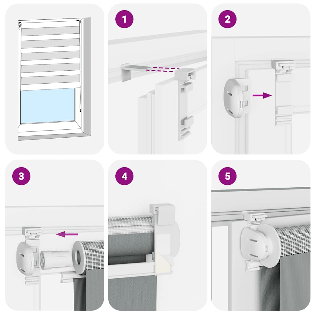 • Δύο τρόποι συναρμολόγησης: Μπορείτε να στερεώσετε το ρολό ζέβρας στον τοίχο ή στο παράθυρο με βίδες ή χωρίς διάτρηση χρησιμοποιώντας βραχίονες σύσφιξης, ανάλογα με τις ανάγκες σας.