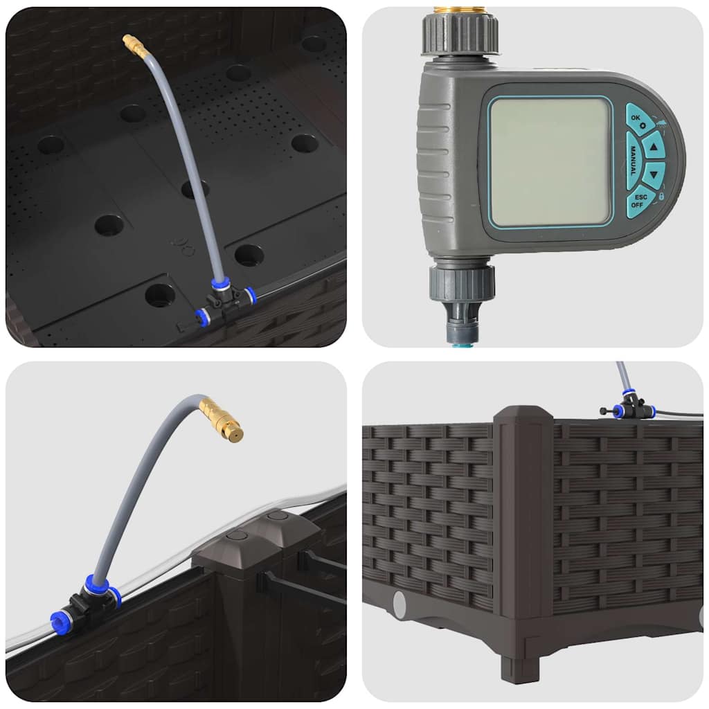 Αυτή η γλάστρα κήπου με άρδευση είναι μια μοντέρνα λύση σχεδιασμένη για τους λάτρεις της υπαίθρου. Το κομψό ορθογώνιο σχήμα της, σε συνδυασμό με ένα υφαντό σχέδιο, προσθέτει μια σύγχρονη αίσθηση στον κήπο ή στην ταράτσα σας. Ιδανική για το φύτεμα μιας ποικιλίας φυτών, αυτή η γλάστρα προσφέρει μια σημαντική, αισθητικά ευχάριστη βάση για τις κηπουρικές σας φιλοδοξίες. Ενσωματώνεται άψογα σε οποιαδήποτε διακόσμηση κήπου, παρέχοντας μια λειτουργική αλλά και κομψή επιλογή για τους οικιακούς κηπουρούς. Η γλάστρα είναι τέλεια για αυτούς που επιθυμούν να ενισχύσουν τον εξωτερικό τους χώρο με πλούσιο πράσινο, εμπλουτισμένο από ένα καινοτόμο σύστημα ποτίσματος που προάγει την υγιή ανάπτυξη των φυτών. Ο ανυψωμένος σχεδιασμός της προσφέρει μια κομψότητα ενώ διασφαλίζει πρακτική χρηστικότητα, μετατρέποντας αυτό το κομμάτι σε μια απαραίτητη προσθήκη για τους κηπουρικούς ενθουσιώδεις.