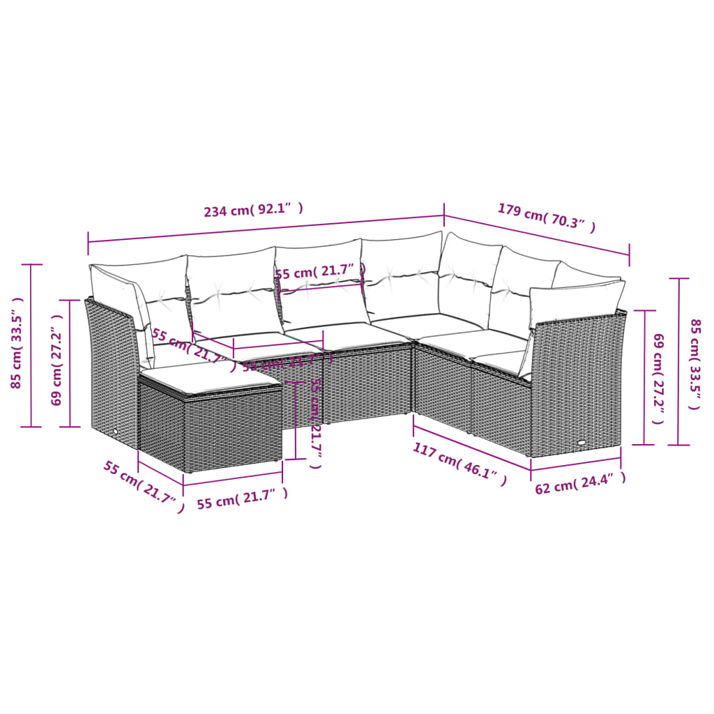 vidaXL Καναπές Σετ 7 Τεμαχίων Μαύρο Συνθετικό Ρατάν με Μαξιλάρια