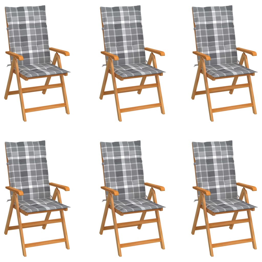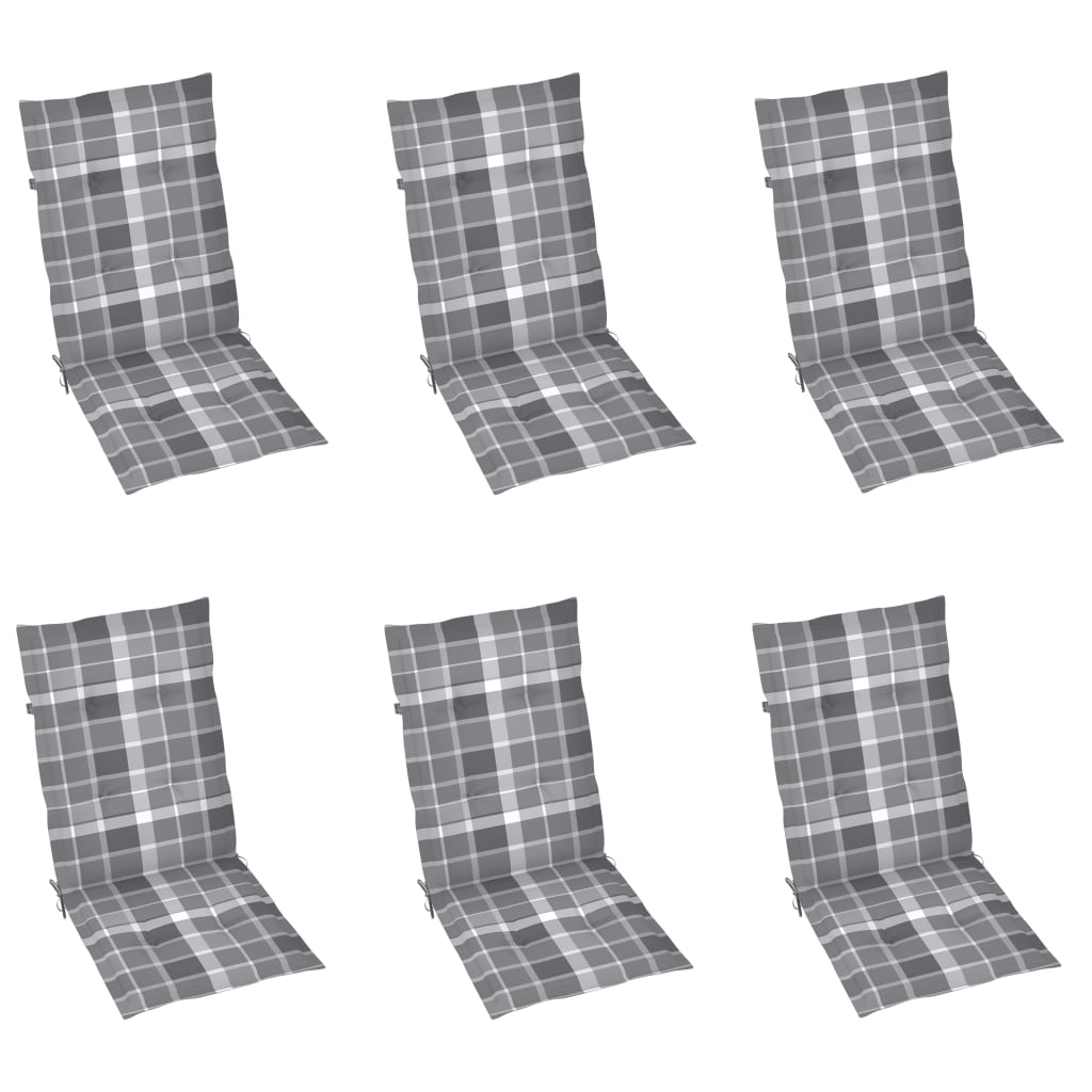 vidaXL Καρέκλες Κήπου 6 τεμ. από Μασίφ Ξύλο Teak & Γκρι Καρό Μαξιλάρια