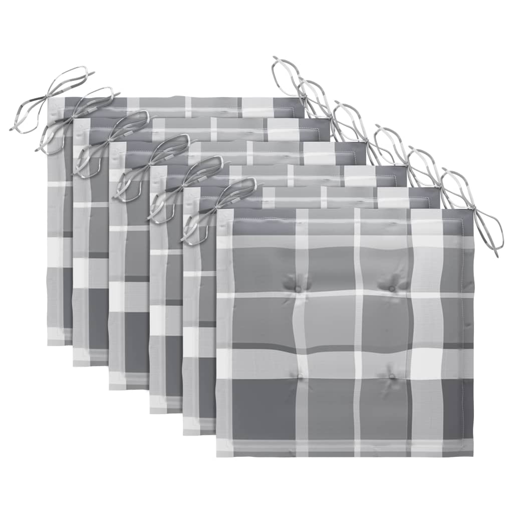 vidaXL Καρέκλες Κήπου 6 τεμ. Μασίφ Ξύλο Teak με Γκρι Καρό Μαξιλάρια
