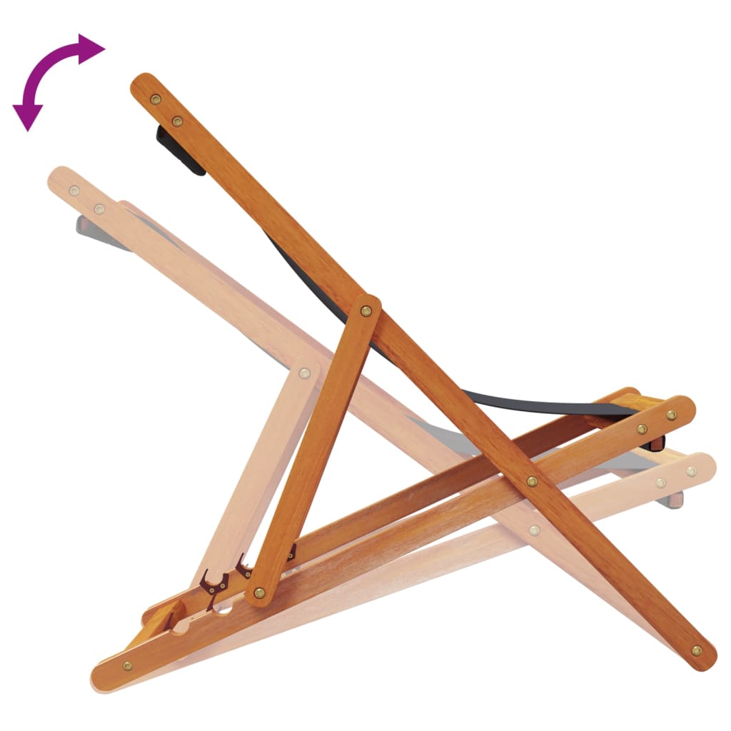 Χαλαρώστε σε αυτές τις ανακλινόμενες καρέκλες στην παραλία, το κάμπινγκ ή τον κήπο σας! Κατασκευασμένες από μασίφ ξύλο ευκαλύπτου και πολυεστερικό ύφασμα, οι πτυσσόμενες καρέκλες παραλίας προσφέρουν αντίσταση στα καιρικά φαινόμενα και είναι πολύ ανθεκτικές.