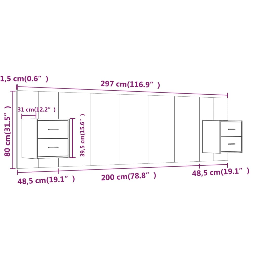 vidaXL Κεφαλάρι Κρεβατιού με Κομοδίνα Λευκό από Επεξεργασμένο Ξύλο
