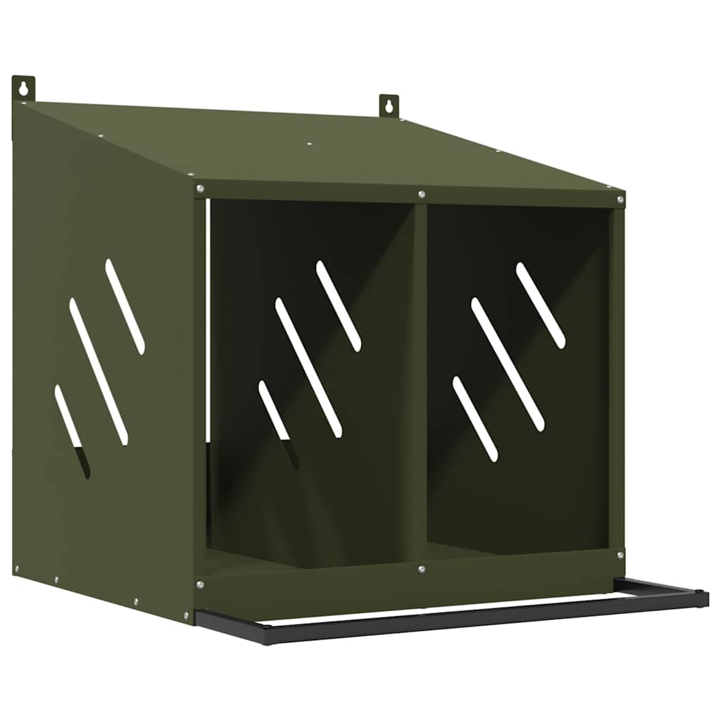vidaXL Κουτί φωλιάσματος κοτόπουλου 2διαμερίσματα Ελαιοπράσινο μέταλλο