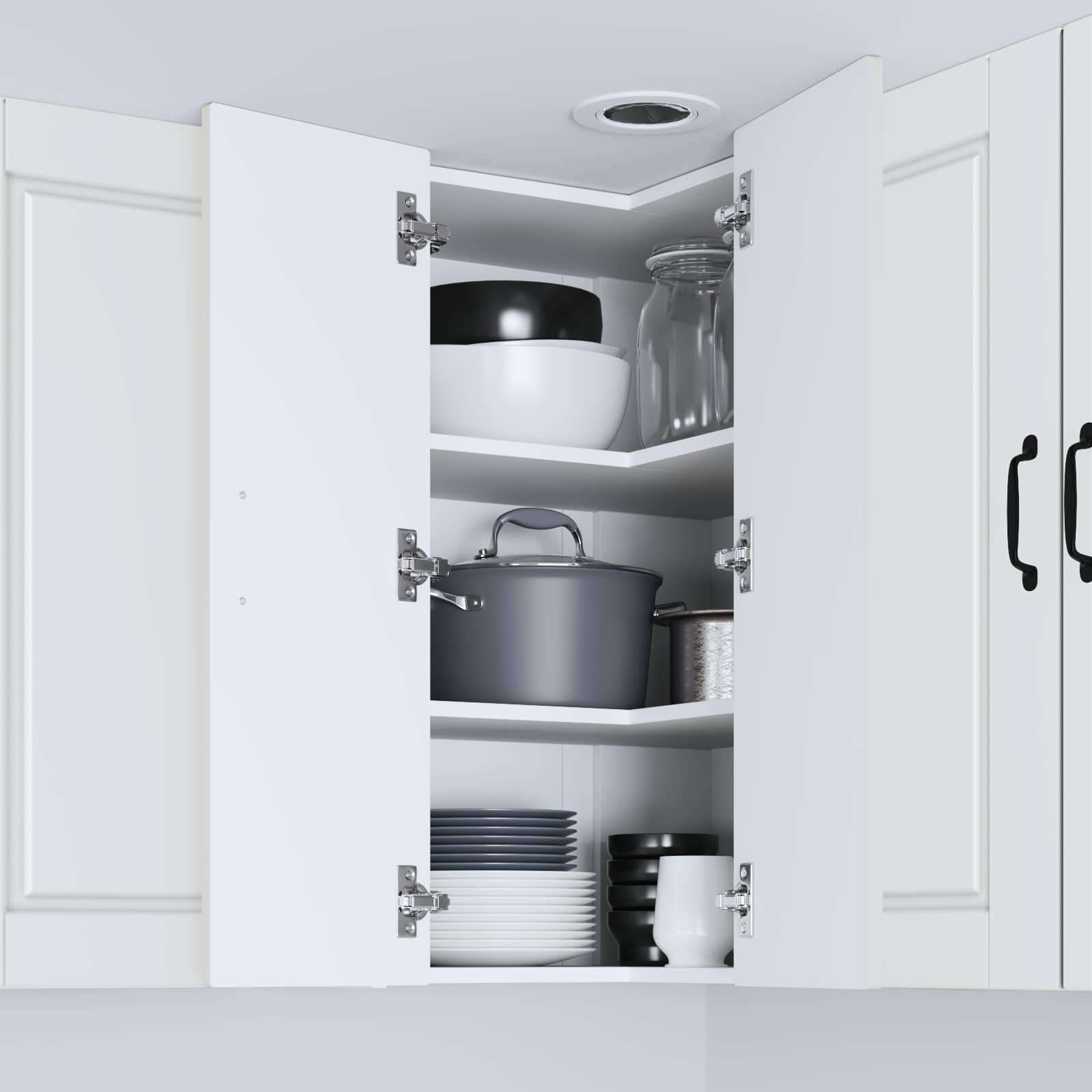 - Λειτουργικά χαρακτηριστικά: Το ντουλάπι διαθέτει ευρύχωρα ράφια για εύκολη πρόσβαση και παρακολούθηση των αποθηκευμένων αντικειμένων. Καλύπτει την ανάγκη οργάνωσης και αποτελεσματικής χρήσης του χώρου, βελτιώνοντας την καθημερινή σας ζωή στην κουζίνα.