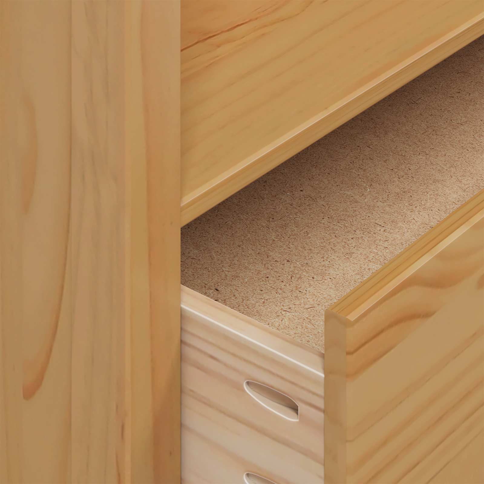 - Ποιότητα μασίφ ξύλο πεύκου: Αυτή η ντουλάπα είναι φτιαγμένη από μασίφ ξύλο πεύκου, γνωστό για την ανθεκτικότητα και τη σταθερότητά του. Αυτό το υλικό εξασφαλίζει μακροχρόνια χρήση και αναβαθμίζει την εμφάνιση της ντουλάπας, με τη φυσική υφή της να προσθέτει κομψότητα σε κάθε υπνοδωμάτιο.