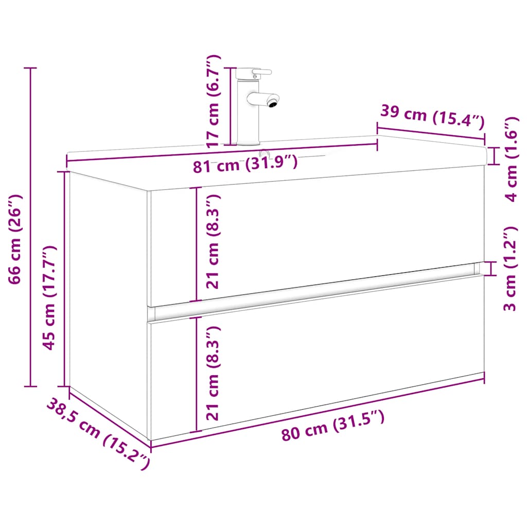 - Συνολικές νιπτήρα: 81 x 39 x 18 εκ. (Μ x Π x Υ)