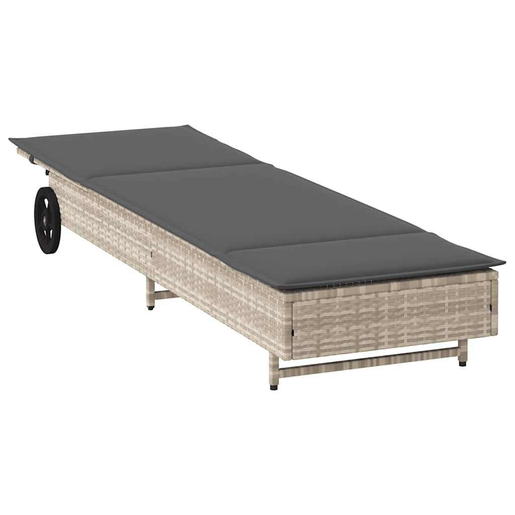 vidaXL Ξαπλώστρα Αν. Γκρι από Συνθετικό Ρατάν με Τροχούς/Μαξιλάρια