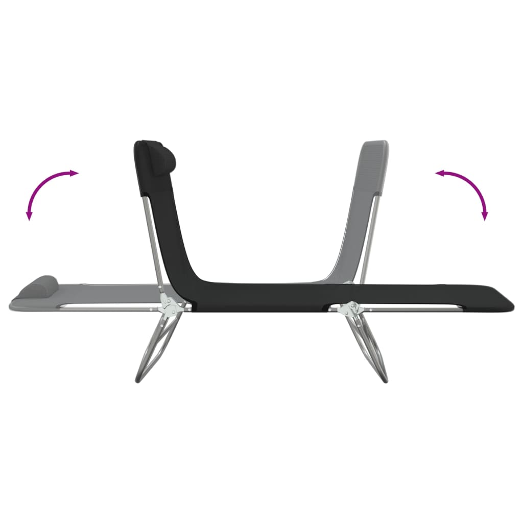 vidaXL Ξαπλώστρες Πτυσσόμενες 2 τεμ. Μαύρες από Textilene & Ατσάλι