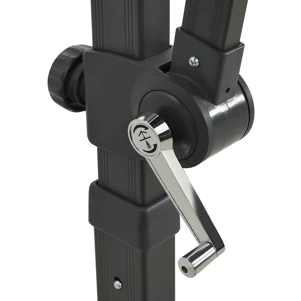 Κατασκευασμένο από πολυεστέρα με αντίσταση στην υπεριώδη ακτινοβολία και το ξεθώριασμα, το κάλυμμα της ομπρέλας σάς παρέχει βέλτιστη προστασία από τον ήλιο και καθαρίζεται εύκολα. Διαθέτει στιβαρή βάση σταυρό για μεγαλύτερη σταθερότητα. Ο μοναδικός σχεδιασμός της ομπρέλας κήπου σάς επιτρέπει να δίνετε κλίση και να την περιστρέφετε κατά 360 μοίρες για να αποκλείσετε τον ήλιο από οποιαδήποτε γωνία. Ο ισχυρός ατσάλινος ιστός και οι 8 στιβαρές ακτίνες καθιστούν την ομπρέλα ήλιου πολύ σταθερή και ανθεκτική. Αυτή η ομπρέλα κήπου μπορεί να ανοίξει και να κλείσει με ευκολία, χάρις στον μηχανισμό με μανιβέλα. Επιπλέον, αυτή η ομπρέλα βεράντας διαθέτει 24 LED για να φωτίζει τον εξωτερικό χώρο σας και να δημιουργεί μια ζεστή και ρομαντική ατμόσφαιρα όταν δύει ο ήλιος.