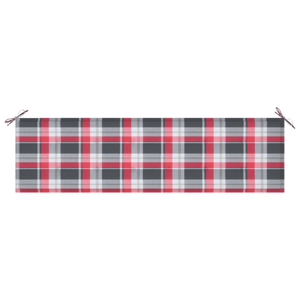 vidaXL Παγκάκι Κήπου 175 εκ. Μασίφ Ξύλο Teak με Κόκκινο Καρό Μαξιλάρι