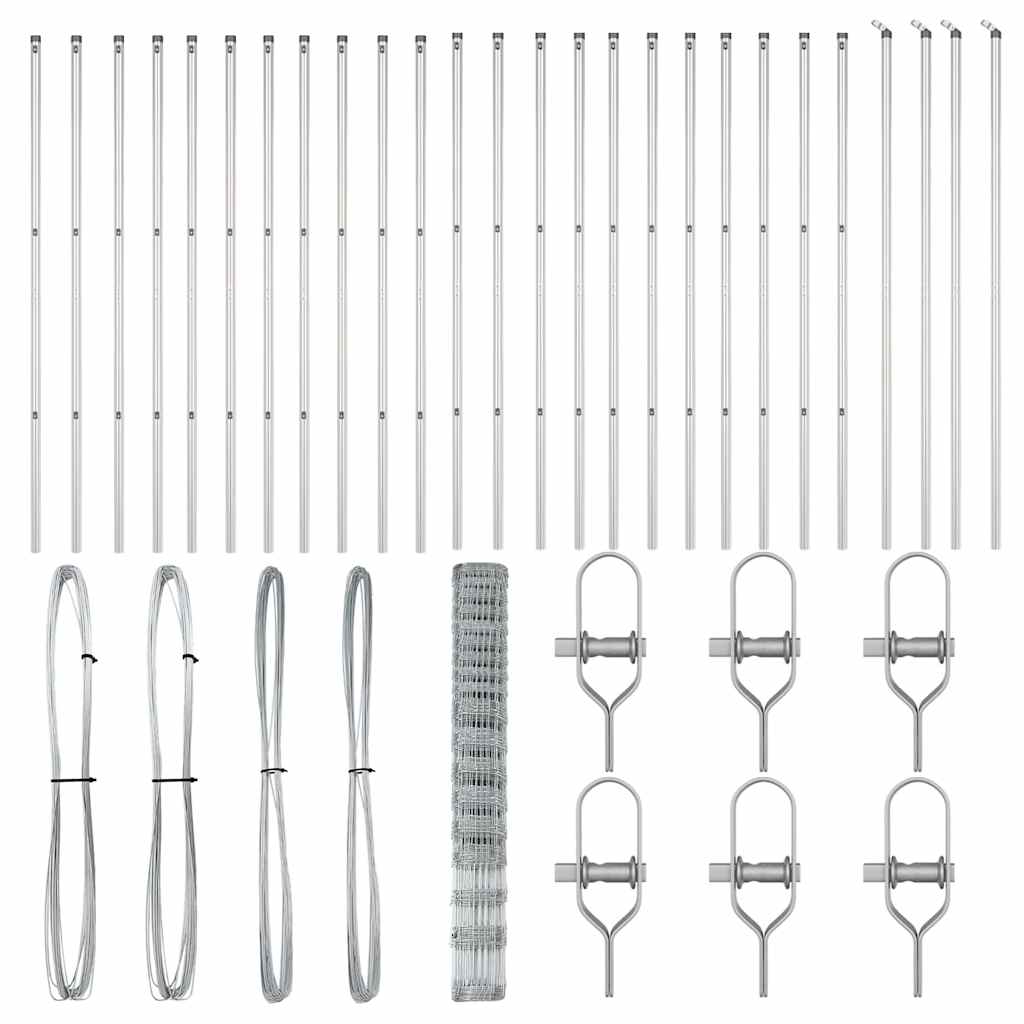 Αυτή η Περίφραξη Αγρού της vidaXL συνδυάζει σκληρή κατασκευή από γαλβανισμένο χάλυβα με πρακτική λειτουργία, κάνοντάς την απαραίτητο φράγμα για όλα τα είδη εξωτερικής χρήσης. Το γυαλιστερό ασημί φινίρισμα και η γερή κατασκευή προσφέρουν ασφάλεια και ενισχύουν την εμφάνιση του εξωτερικού σου χώρου, ιδανικό για σπίτια, κήπους, φάρμες και όχι μόνο.