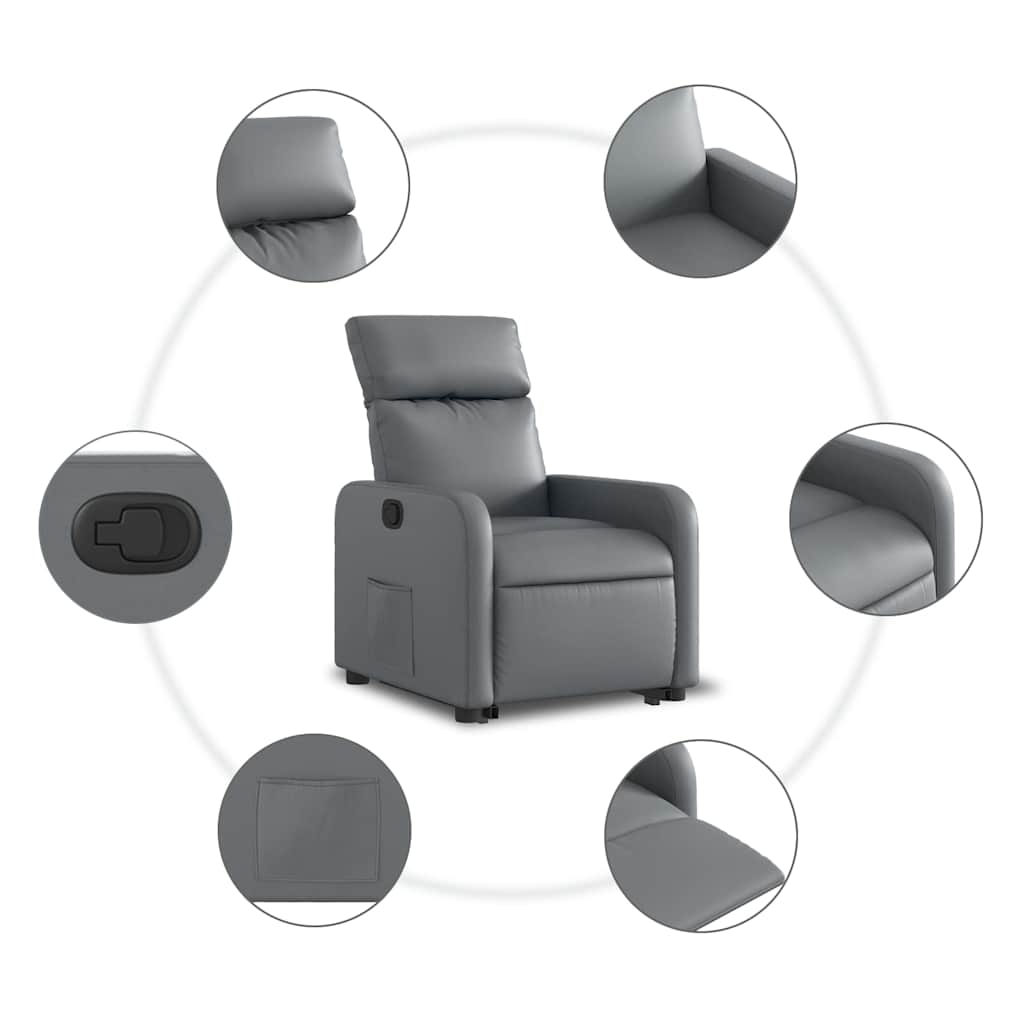 vidaXL Πολυθρόνα Ανακλινόμενη με Ανύψωση Γκρι Συνθετικό Δέρμα