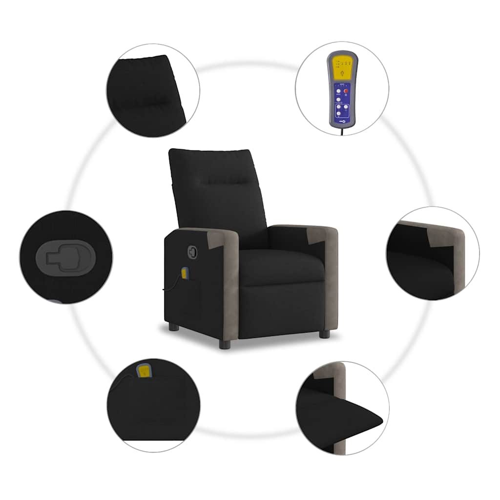 vidaXL Πολυθρόνα Μασάζ Ανακλινόμενη Μαύρη Υφασμάτινη