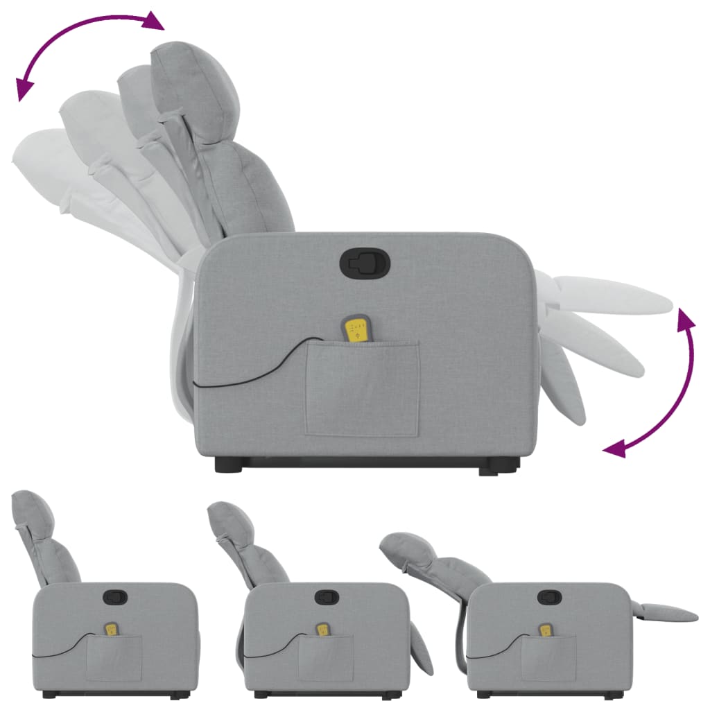 vidaXL Πολυθρόνα Μασάζ Ανακλινόμενη με Ανύψωση Ανοιχτό Γκρι Υφασμάτινη