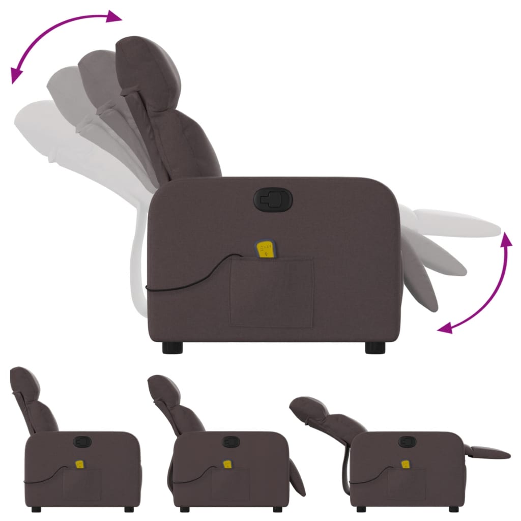 vidaXL Πολυθρόνα Μασάζ Ανακλινόμενη Σκούρο Καφέ Υφασμάτινη