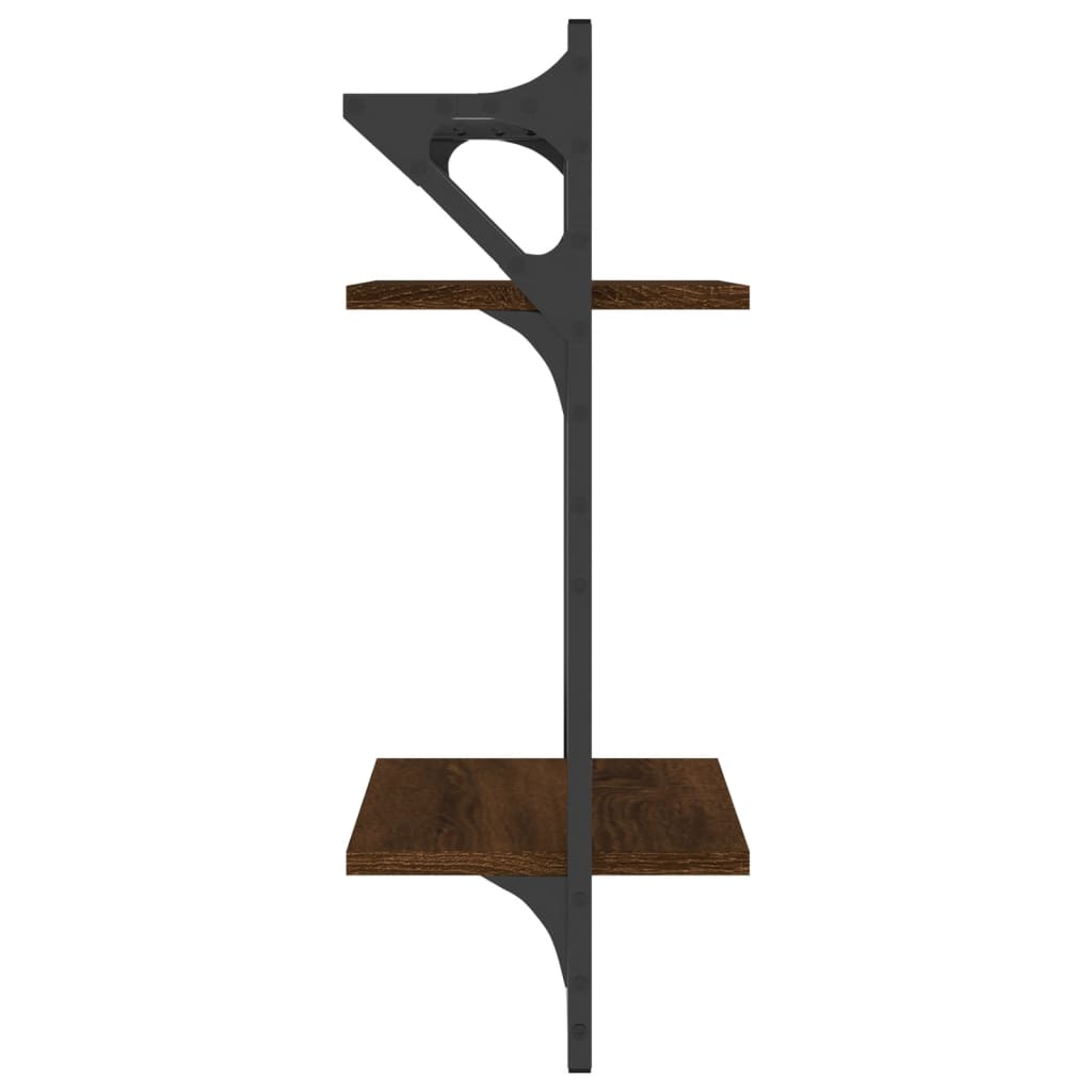 vidaXL Ράφια Τοίχου 2 Επιπέδων με Μπάρα 2 τεμ. Καφέ Δρυς 30x25x65 εκ.