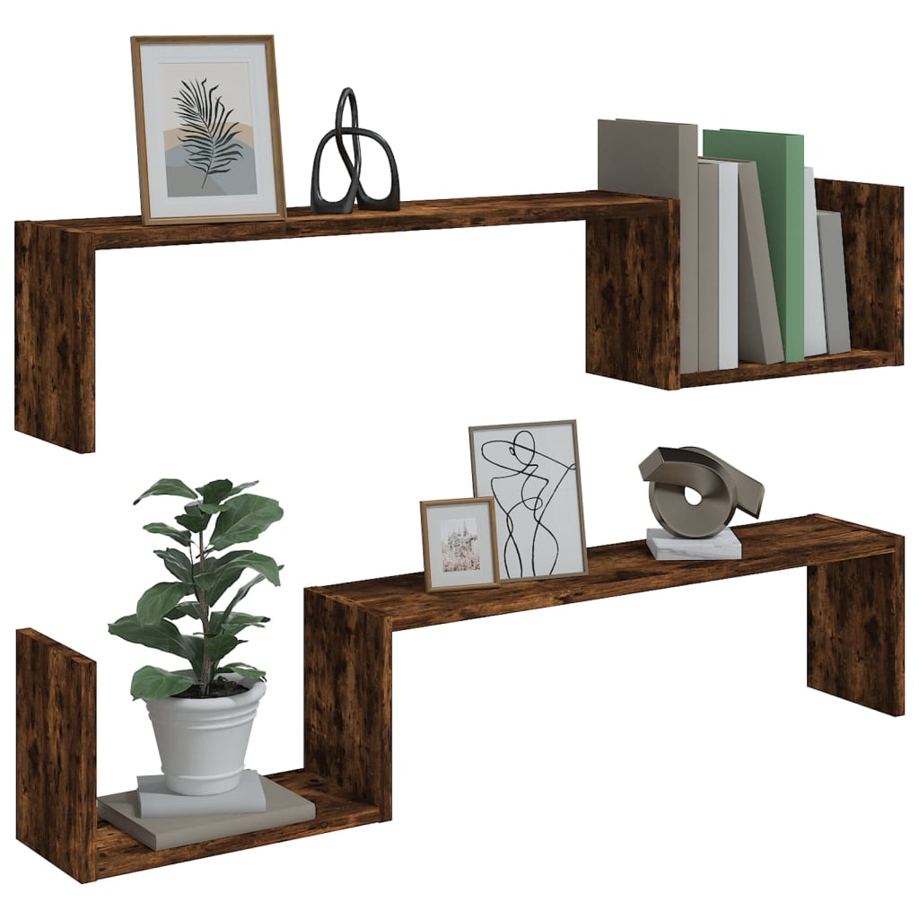 vidaXL Ράφια Τοίχου 2 τεμ. Καπνιστή Δρυς 100x15x20 εκ. Επεξεργ. Ξύλο