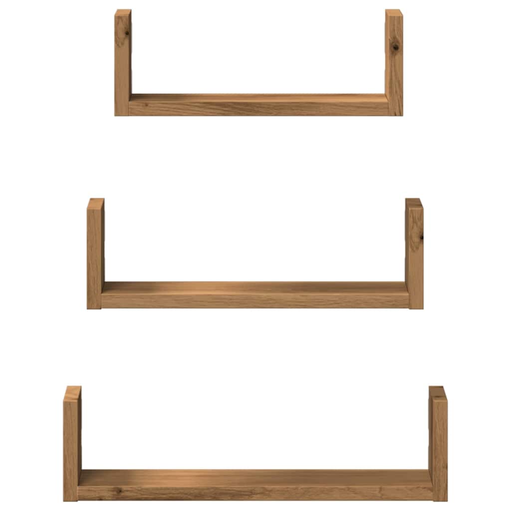 vidaXL Ράφια Τοίχου 3 τεμ. Αρτισιανή Δρυς Επεξεργασμένο Ξύλο