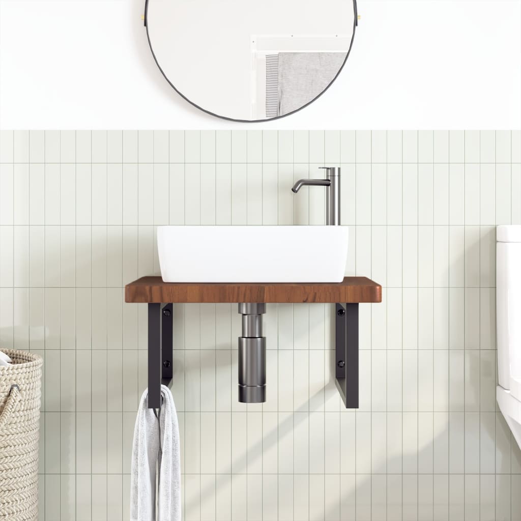 vidaXL Ράφι Νιπτήρα Τοίχου από Ατσάλι / Μασίφ Ξύλο Δρυός