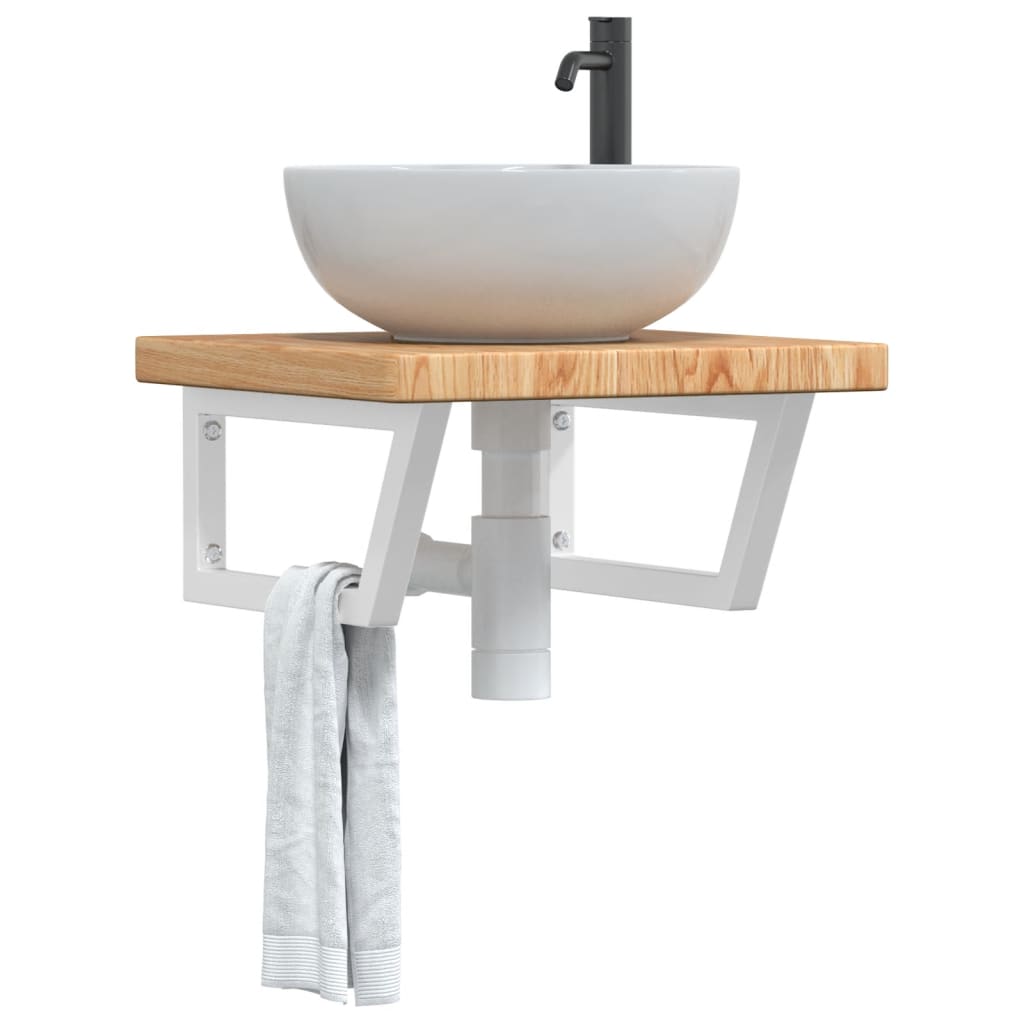 vidaXL Ράφι Νιπτήρα Τοίχου από Ατσάλι / Μασίφ Ξύλο Δρυός