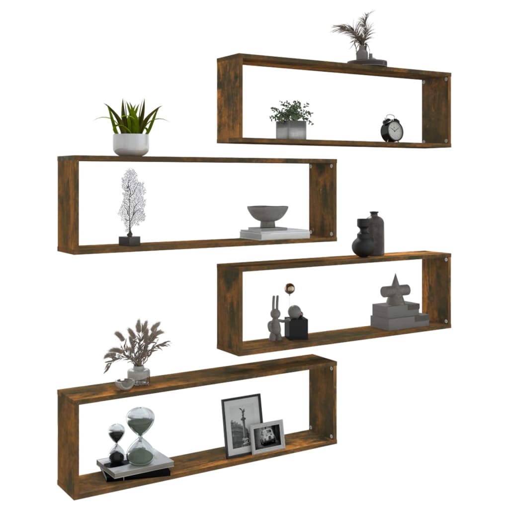 vidaXL Ραφιέρες Τοίχου Κύβοι 4 τεμ. Καπν. Δρυς 100x15x30εκ. Επεξ. Ξύλο