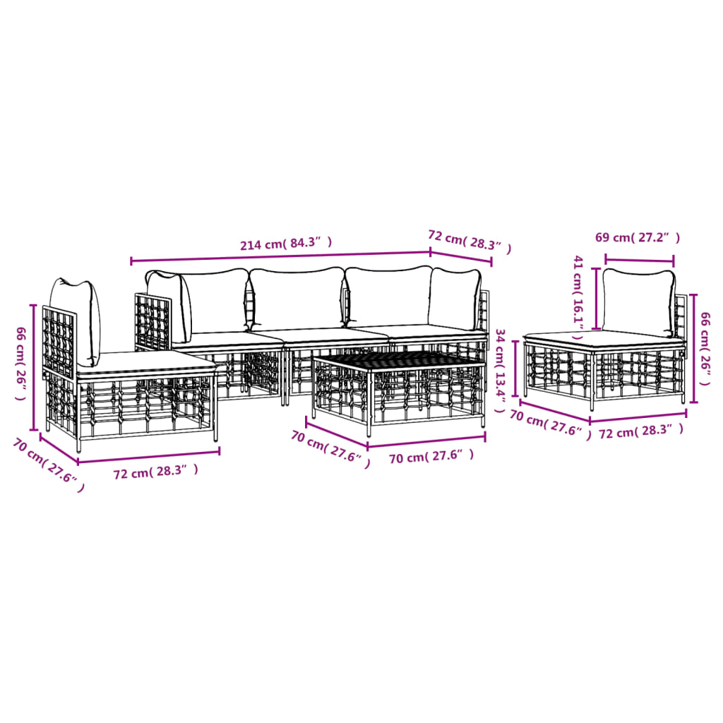 vidaXL Σαλόνι Κήπου Σετ 6 Τεμαχίων Ανθρακί Συνθετικό Ρατάν & Μαξιλάρια