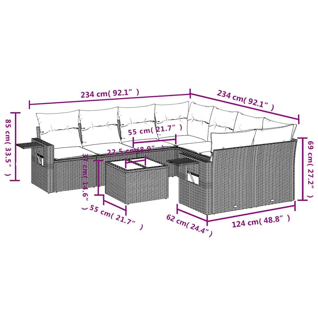 vidaXL Σαλόνι Κήπου Σετ 9 Τεμαχίων Γκρι Συνθετικό Ρατάν με Μαξιλάρια
