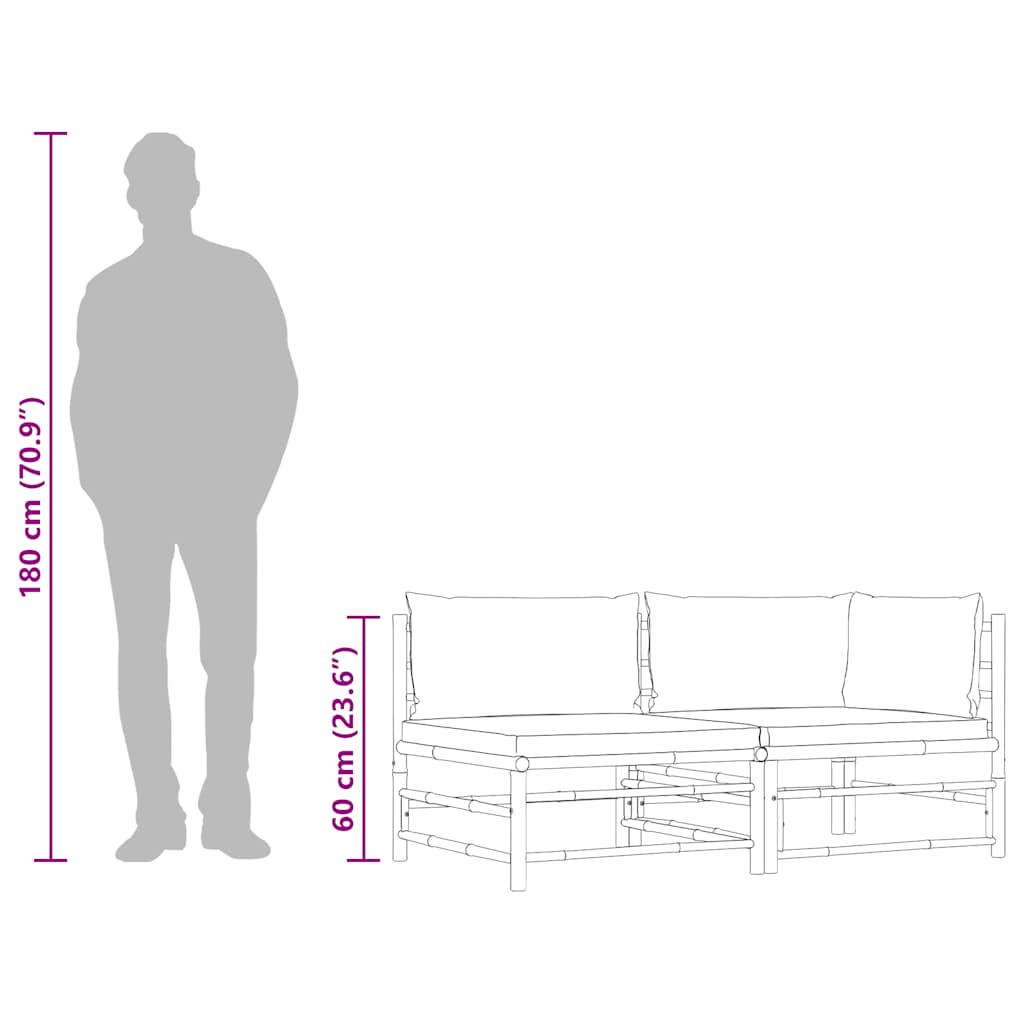 vidaXL Σαλόνι Κήπου 2 Τεμαχίων από Μπαμπού με Σκούρα Γκρι Μαξιλάρια