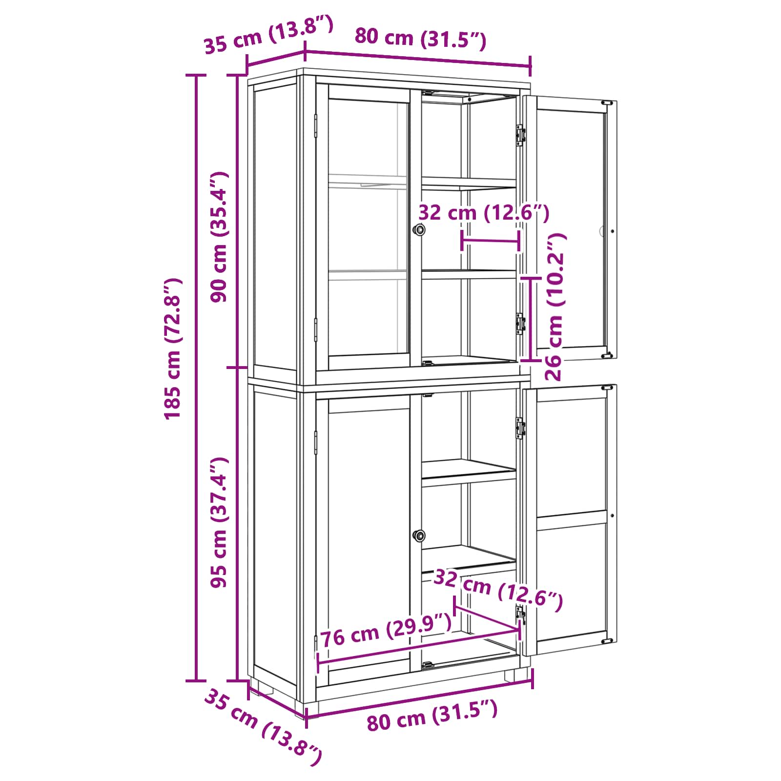 - Συνολικές διαστάσεις: 80 x 35 x 185 εκ (Μ x Π x Υ)