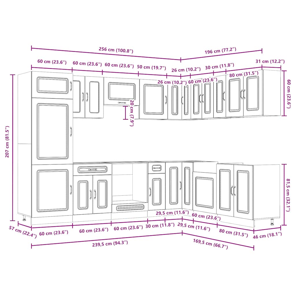 - 1 x ντουλάπι κουζίνας: 60 x 57 x 207 cm (Π x Β x Υ)