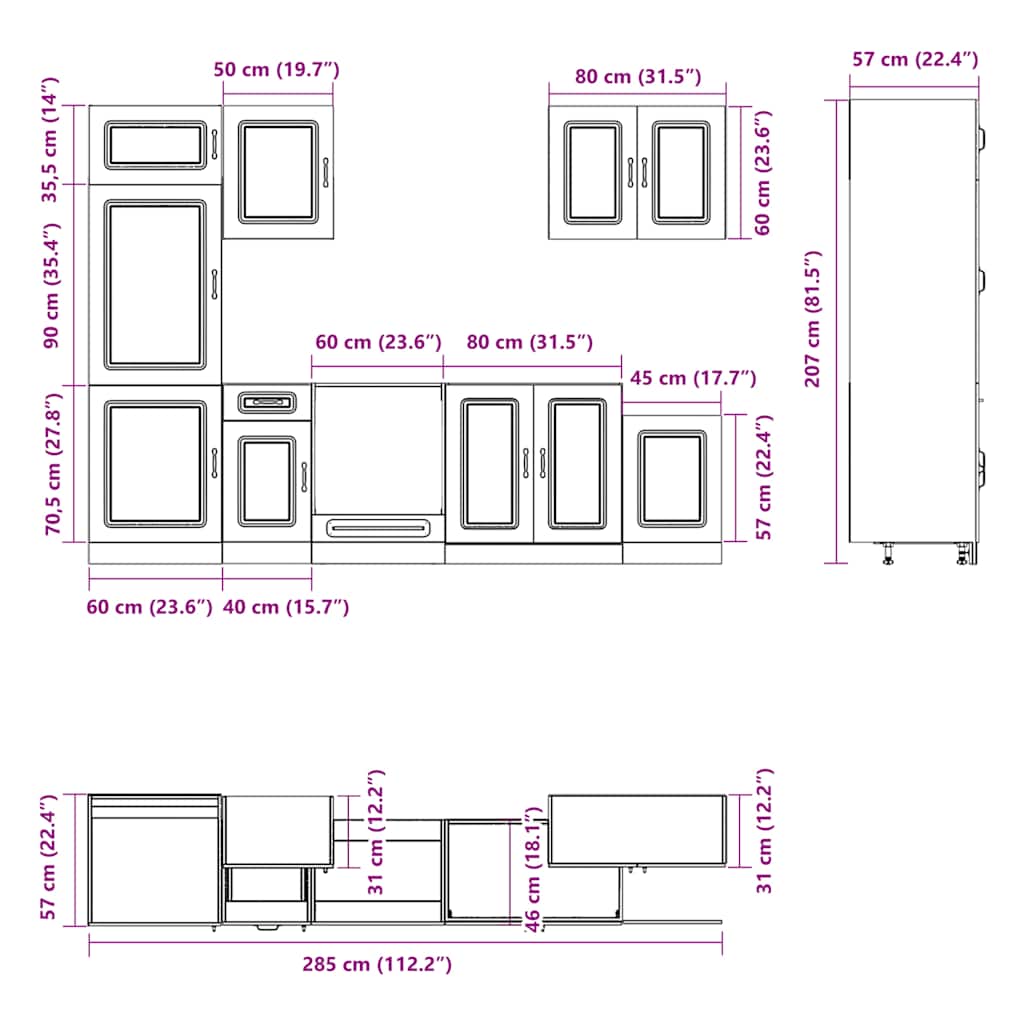 - 1 x Ντουλάπι φούρνου: 60 x 46 x 81,5 εκ. (Π x Β x Υ)