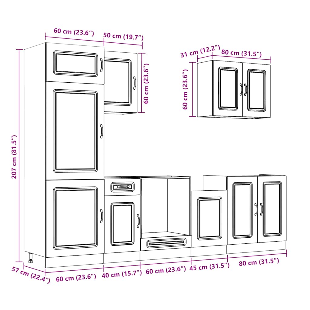 • 1 x ντουλάπι κουζίνας: 60 x 57 x 207 cm (Π x Β x Υ)