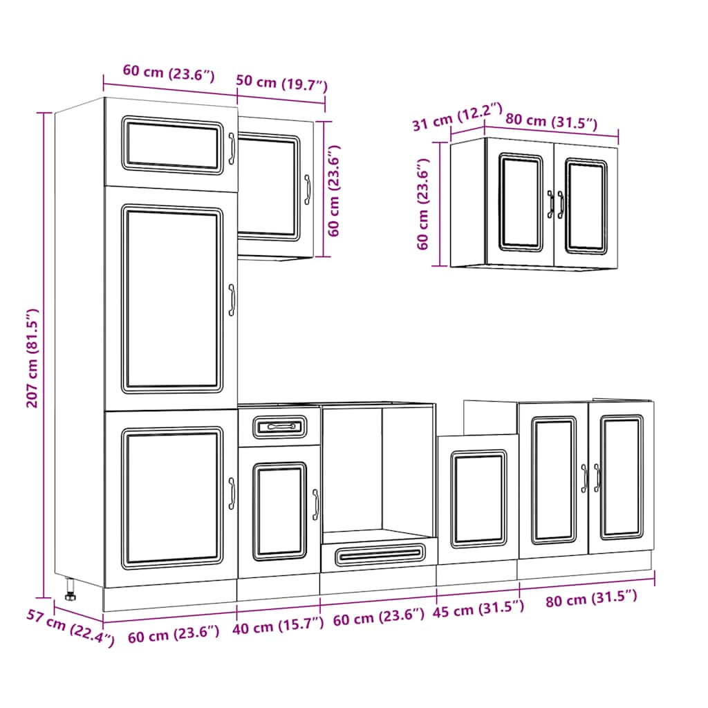 - 1 x Ντουλάπι κουζίνας: 60 x 57 x 207 cm (Π x Β x Υ)