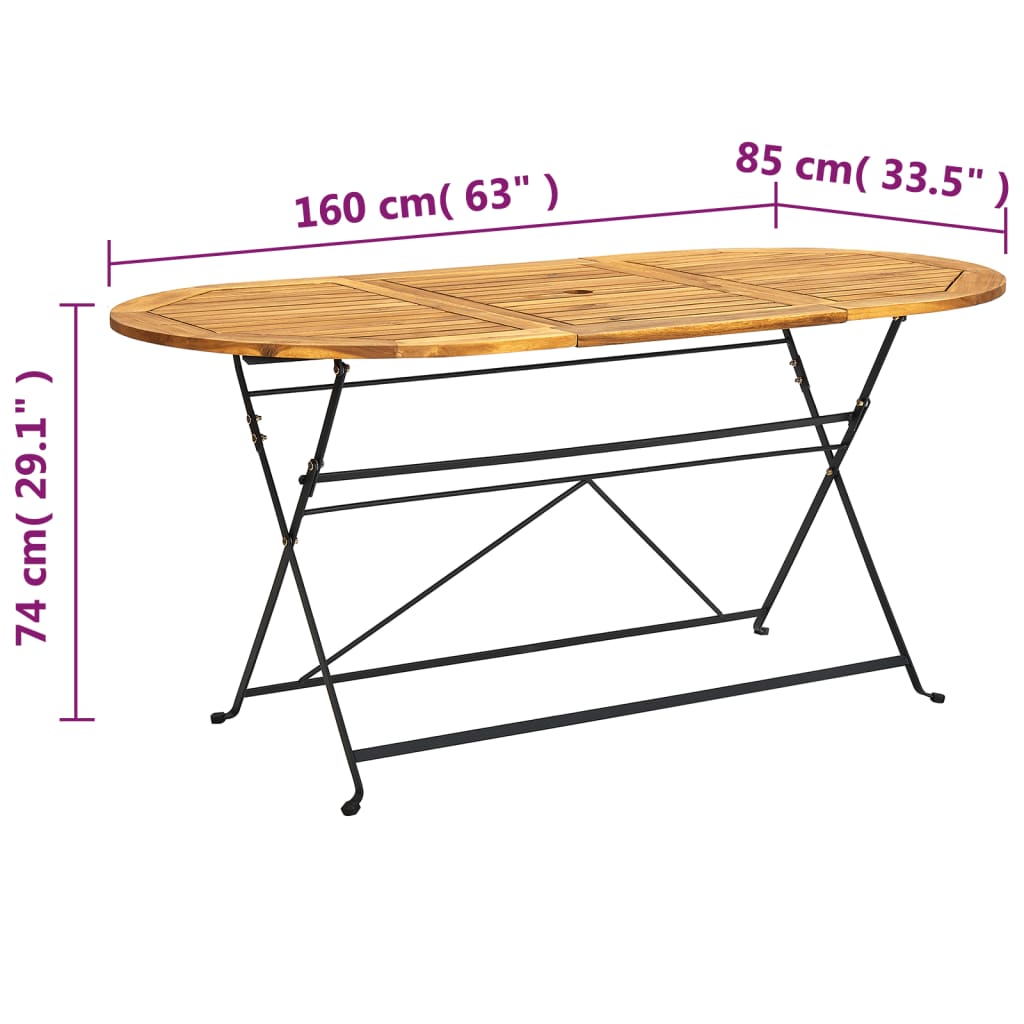 Αυτό το σετ επίπλων κήπου είναι κατασκευασμένο από μασίφ ξύλο ακακίας, ένα τροπικό σκληρό ξύλο, με αντίσταση στα καιρικά φαινόμενα και είναι πολύ ανθεκτικό. Το ανθεκτικό ατσάλι χαρίζει επίσης επιπρόσθετη σταθερότητα. Το τραπέζι και οι καρέκλες μπορούν να καθαριστούν εύκολα με ένα νωπό πανί και μπορούν να αναδιπλωθούν για εξοικονόμηση χώρου όταν δεν χρησιμοποιούνται.