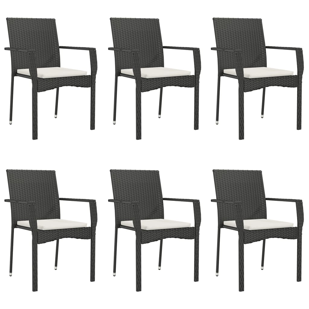 vidaXL Σετ Τραπεζαρίας Κήπου 7 Τεμ. Μαύρο Συνθετικό Ρατάν με Μαξιλάρια