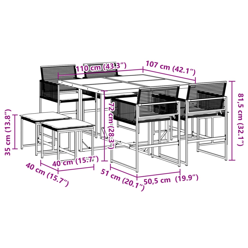 Αυτό το σετ τραπεζαρίας κήπου είναι μια εξαιρετική επιλογή για υπαίθρια γεύματα ή για χαλάρωση στον κήπο, την αυλή ή τη βεράντα.