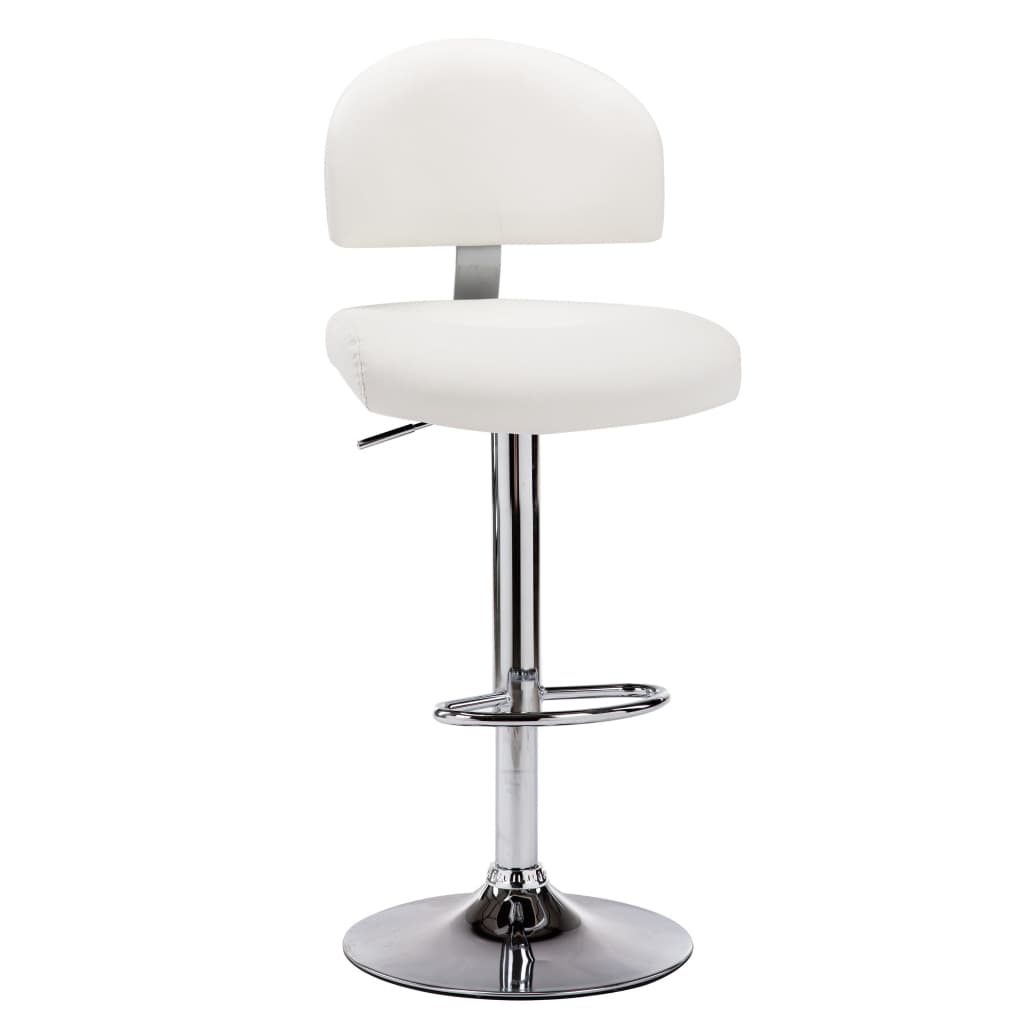 Η καρέκλα διαθέτει ταπετσαρία από εύκολο στο καθάρισμα συνθετικό δέρμα, το οποίο παρέχει υψηλή άνεση. Η βάση από επιχρωμιωμένο ατσάλι είναι πολύ στιβαρή, ενώ το ενσωματωμένο ποδοστήριγμα ενισχύει την καθιστική άνεση. Ο εργονομικός σχεδιασμός καθιστά το σκαμπό μπαρ κατάλληλο για πολύωρη χρήση. Επιπλέον, χάρις στον μηχανισμό ανύψωσης με αέριο, αυτό το περιστρεφόμενο σκαμπό μπαρ μπορεί να ρυθμιστεί καθ' ύψος και θα αποτελέσει μια εξαιρετική επιλογή σε κάθε μπαρ ή τραπεζαρία. Μπορεί επίσης να περιστραφεί κατά 360 μοίρες, προσφέροντας εξαιρετική ευελιξία. Στην παράδοση περιλαμβάνεται 1 σκαμπό.