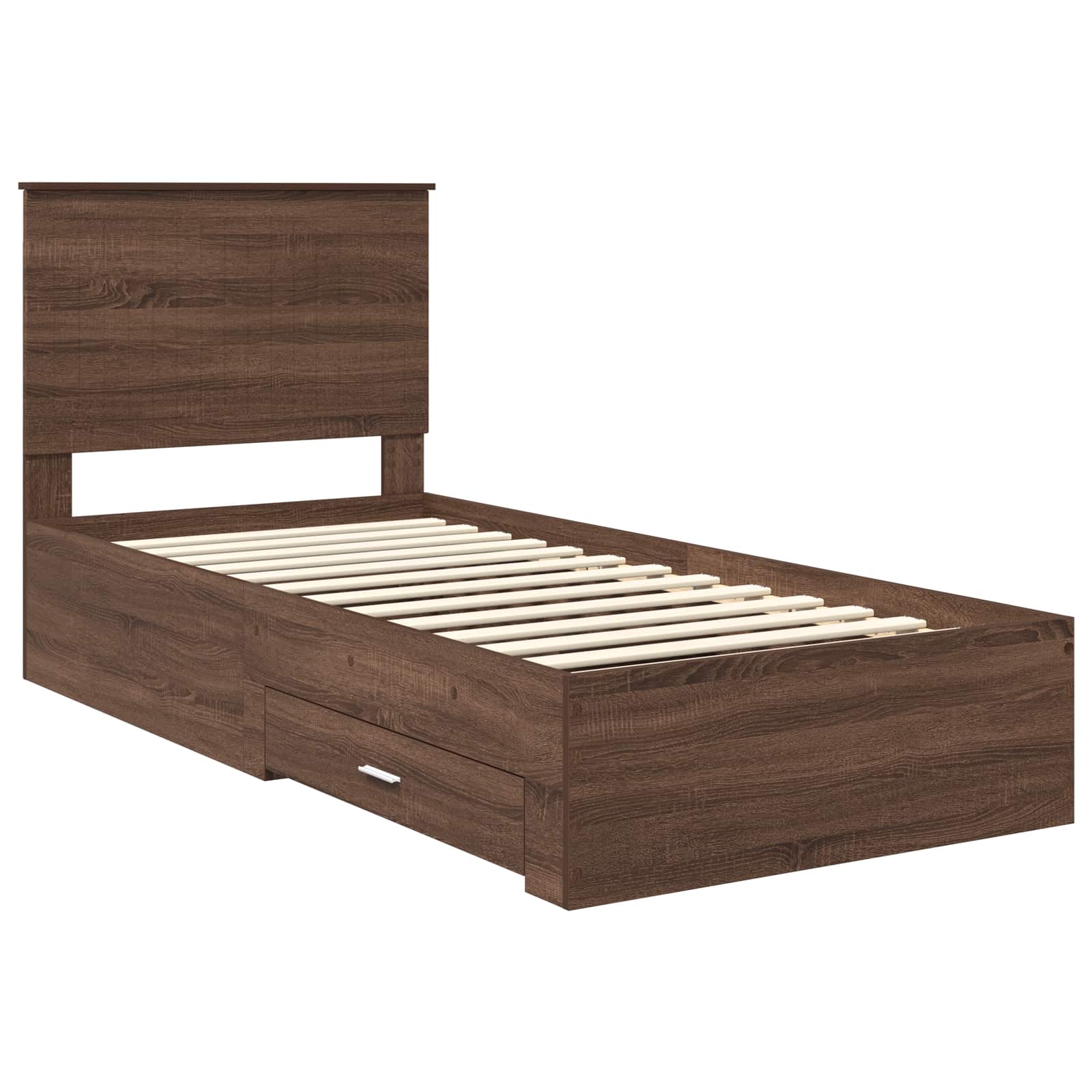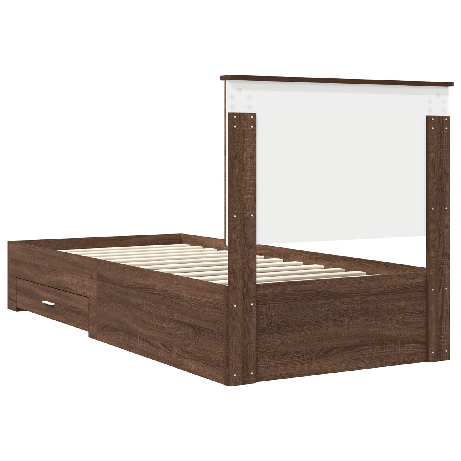 vidaXL Σκελετός Κρεβατιού με συρτάρι Καφέ Δρύινο και Ασημί 90 x 190 cm