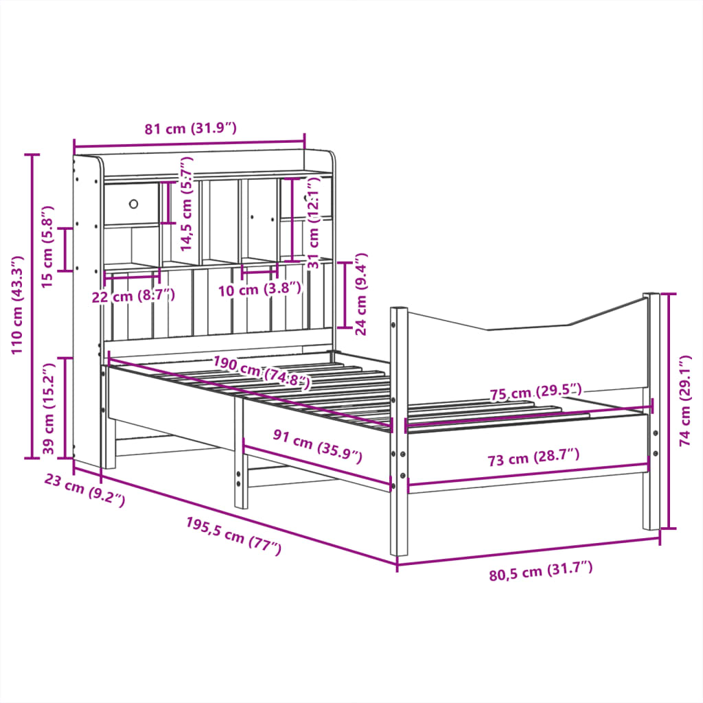 vidaXL Σκελετός Κρεβ. Χωρίς Στρώμα Λευκό 75x190 εκ Μασίφ Πεύκο