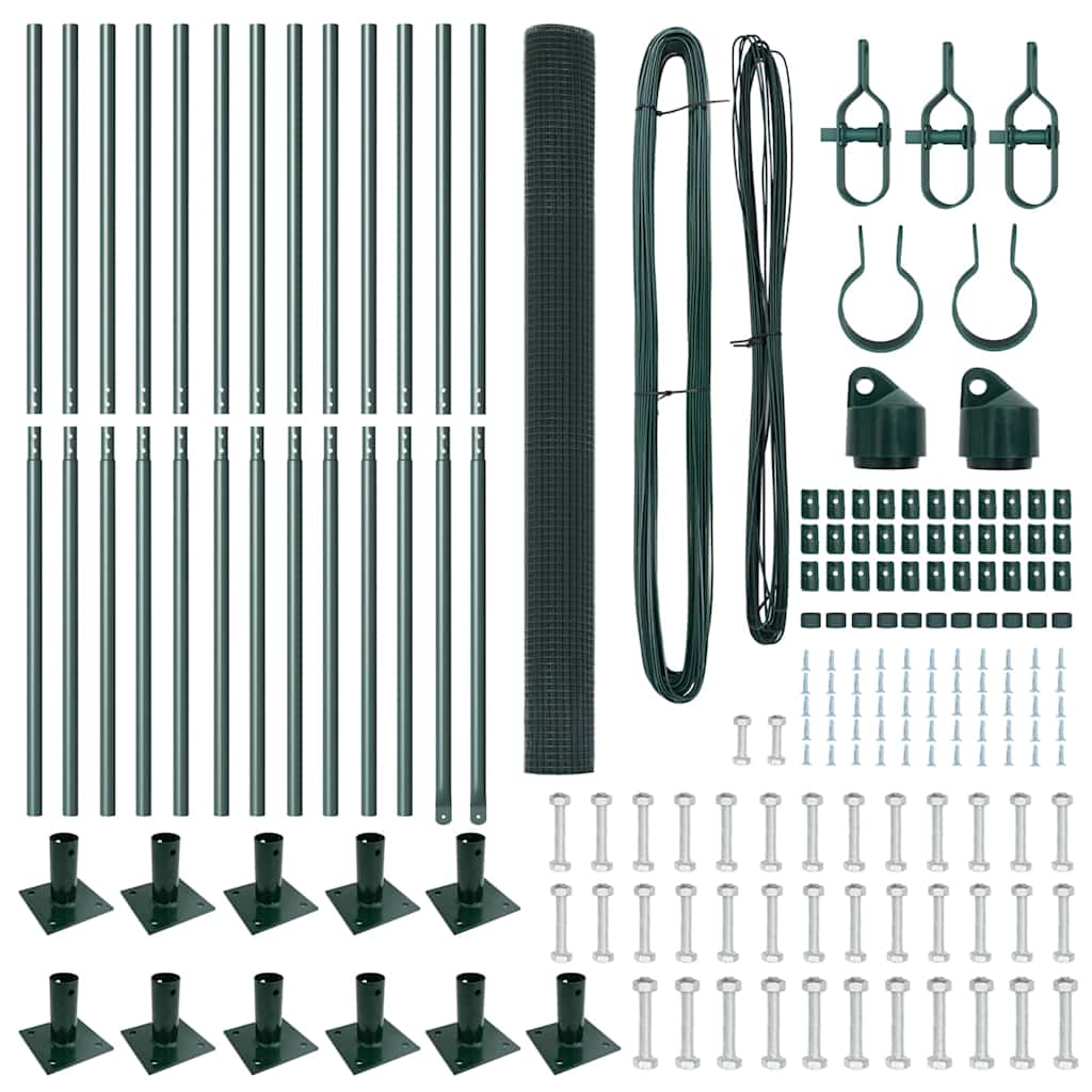 vidaXL Συγκόλλητος Φράκτης με 13 Στύλους με φλάντζα Πράσινος 1.6x25 μ Χάλυβας